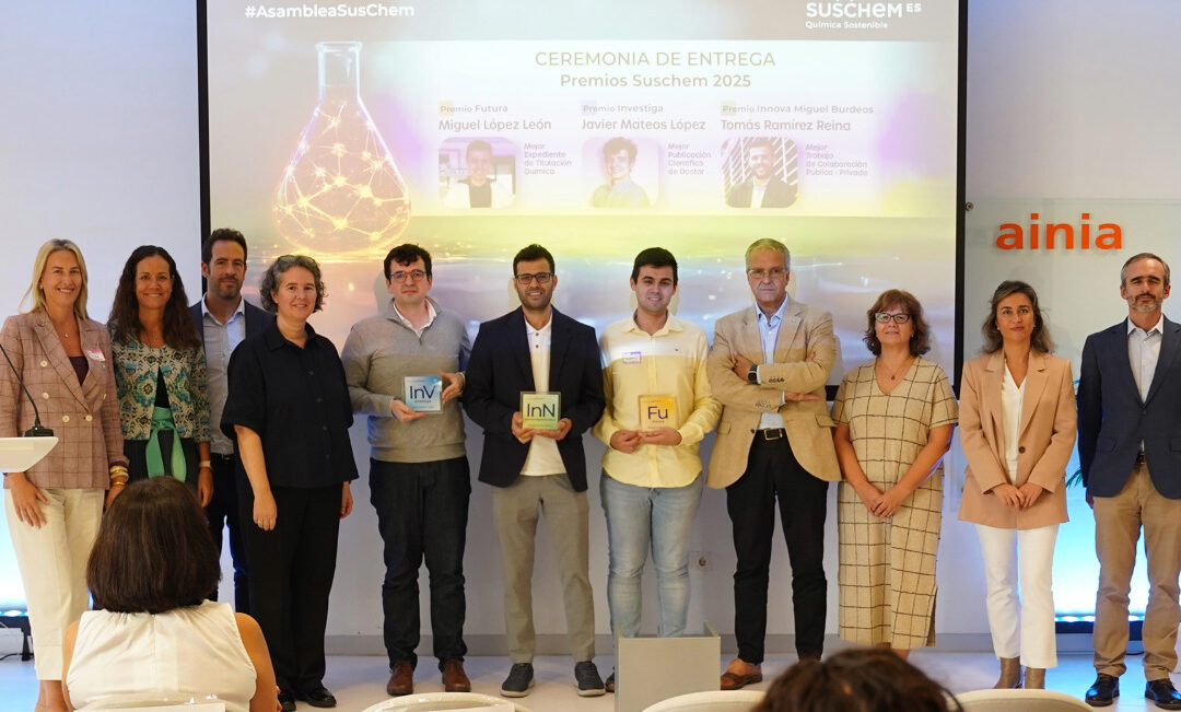 El acto central de la Asamblea ha sido la entrega de los Premios SusChem 2025, que cada año convoca SusChem – España y promueven la Federación Empresarial de la Industria Química Española (Feique), la Asociación Nacional de Químicos e Ingenieros Químicos de España (ANQUE), la Conferencia Española de Decanos de Químicas (CEDQ), el Salón Internacional de la Química Expoquimia, el Foro Química y Sociedad y Foro Química y Sociedad. Este año celebran su XVII edición y han distinguido a tres jóvenes talentos de la investigación química.